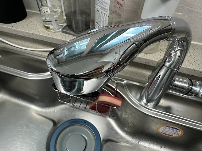 싱크대는 물때가 생겨서 설거지 후 청소를 빈번하게 합니다. 그에 반해 수도꼭지는 잘 청소 안 하게 됩니다.