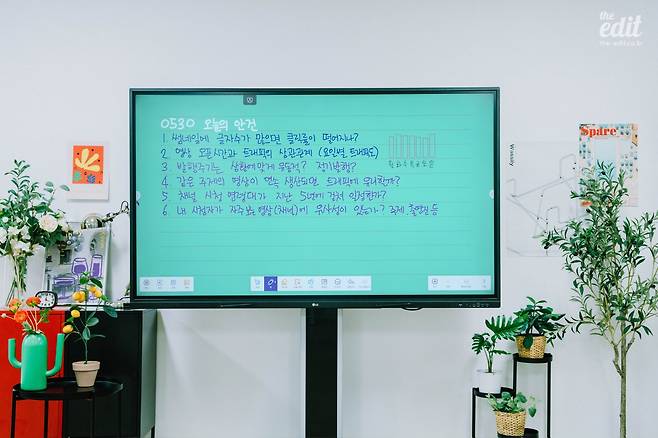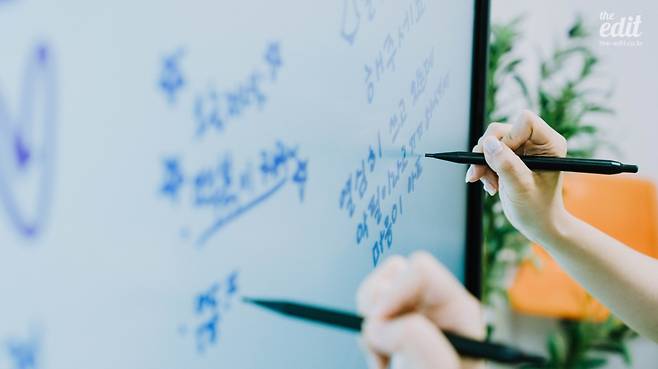 안녕하세요, 에디터H입니다. 며칠 전에 당근 마켓에 나눔 게시물을 하나 올렸습니다. 사무실에서 쓰던 이동식 화이트보드가 쓸모없어졌으니, 필요한 사람이 있으면 가져가라는 내용이었죠. 그 화이트보드는 정말이지 거대한 애물단지였습니다. 물론 구입할 때만 해도 우리에겐 야심 찬 계획이 있었습니다. 다 같이 모여 회의를 할 때 주요 안건을 정리하고, 촬영 관련 논의가 필요할 때 구도를 직접 그려서 바로바로 소통할 수 있을 거라고 생각했습니다. 라이브 방송을 할 때는 PD들이 출연자에게 바로바로 현황을 공유하는 용도로 써도 좋을 것 같았죠. 하지만 그런 일은 일어나지 않았습니다. 바로 옆에 시안을 띄워두지 않고서는 회의가 진행되지 않았습니다. 사용하려고 할 때마다 화면 가득 쓰여있는 낙서들을 지워야 하는 것도 번거로웠고요. 결국에 이 화이트보드는 점심 메뉴를 정하기 위한 사다리타기로 조차 쓰이지 않게 되었습니다. 그때쯤 에디터M이 말하더군요. “내가 생각을 잘못했어. 나한테 필요한 건 전자칠판인 것 같아.” 실제로 정확히 저렇게 말했답니다. 매우 결단력 있는 목소리였고, 그렇게 우리는 전자칠판을 찾아 헤매기 시작했습니다.