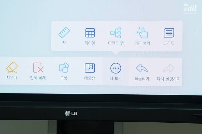 LG 전자칠판 TR3DK 라인업은 제가 원하는 조건을 모두 갖추고 있었습니다. 강의실, 회의실뿐만 아니라 일반 사무실이나 가정에서도 사용할 수 있는 제품이라는 점이 마음에 들었습니다. 디스플레이 명가답게 크고 넓은 디스플레이를 통해 고르고 깨끗한 화면과 빠른 반응성을 보여줄 뿐만 아니라, 큰 화면을 마음껏 활용할 수 있는 소프트웨어 환경 역시 완벽했습니다. 화면을 다양한 용도로 활용할 수 있도록 여러 교육용 템플릿을 내장하고 있고, 터치 기능도 편리해 보였고, 단순 필기 기능 외에도 디스플레이를 활용할 수 있는 편의 기능이 다양했습니다. 칠판 용도를 갖춘 스마트 디스플레이인 셈이었죠.