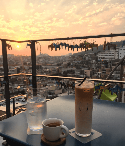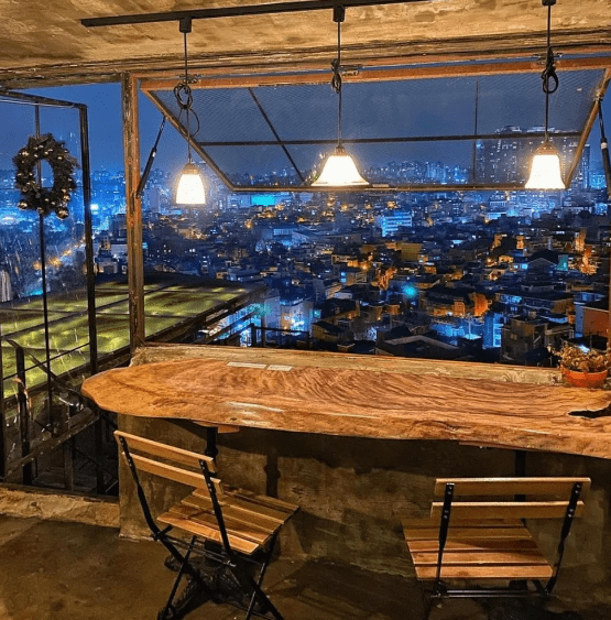 또 다른 매력으로는 카페 안에서 바라보는 이태원과 남산의 전경을 꼽을 수 있습니다. 내부에 설치된 통유리창으로 실내에서도 탁 트인 전망을 감상할 수 있죠.