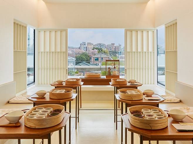 1층 숍에선 ‘동백 플라워 가든’, ‘구운 녹차’처럼 매장에서 갓 볶은 차를 팔고 있어요. 2층 카페에선 기와 모양을 닮은 찰깨 와플 ‘북촌의 기와’ 같은 티푸드를 먹을 수 있죠. 3층 바설록에선 ‘볼케닉 한라티니’, ‘탠저린 북촌 슬링’ 같은 무알콜 티 칵테일이 마련돼 있어요. 모두 이 매장에서만 파는 시그니처 메뉴입니다. 티하우스 북촌은 매달 2만 명이 찾는 명소가 됐어요.