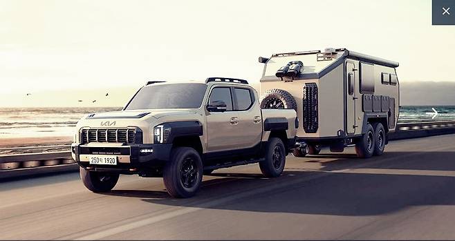 타스만은 기아가 처음으로 선보인 정통 픽업트럭이다. SUV 명가로 통하는 기아의 기술력과 디자인 감각을 집약한 모델로, 단순한 화물 수송이 아닌 레저용 RV로서의 활용도를 극대화했다.