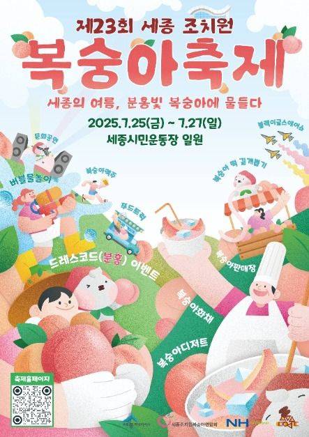 7월의 마지막 주말, 세종시 조치원은 달콤한 향기로 가득 찬다. 117년 전통의 조치원복숭아를 주제로 열리는 ‘세종 조치원 복숭아 축제’가 올해로 23회를 맞이하며 7월 25일부터 27일까지 단 3일간 세종시민운동장에서 개최된다.