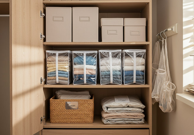 • 지퍼백, 압축팩: 계절용품, 장난감, 의류 정리에 활용