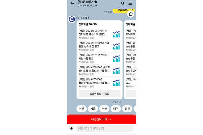 이제는 별도 앱 설치 없이 카카오톡으로 쎈AI에 접속해 정부지원 정보를 확인할 수 있다. 전국 지자체의 창업, 기술, 인력, 금융, 수출, 내수, 경영 관련 정부지원 사업을 누구나 손쉽게 버튼 혹은 검색으로 찾아볼 수 있다.