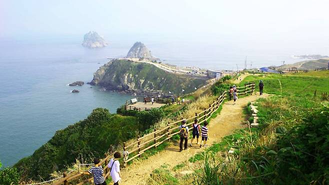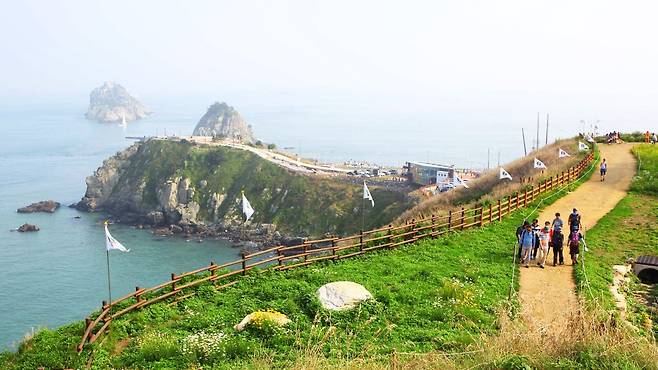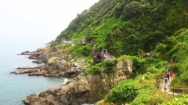 왼편엔 울창한 숲, 오른편엔 거센 파도가 부딪히는 절벽. 그 사이 나무 데크가 길게 이어지며 걷는 이의 발걸음을 인도한다.