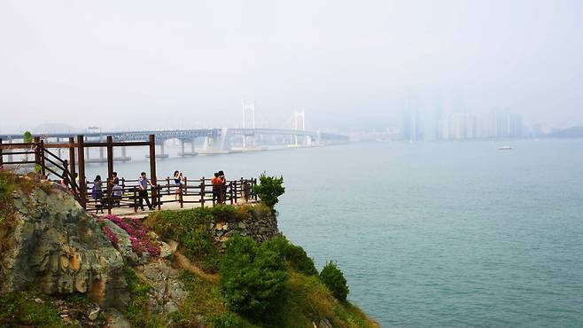 이기대를 지나면 트레킹은 점차 도심의 품으로 들어선다. 광안리해변을 지나 동백섬으로 향하는 길은 훨씬 평탄해지고, 여유로운 분위기로 바뀐다.