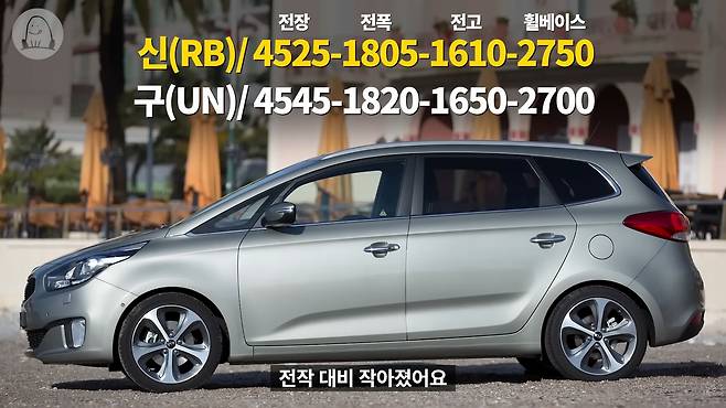 올란도의 공세에 맥을 못추고 있던 2013년, 기아는 야심차게 준비한 카렌스의 3세대 모델을 투입했습니다. 최신 패밀리룩을 적용해 날카로우면서도 익살스러운 인상으로 꾸며진 전면부, LED 면발광을 더해 고급스럽게 마무리 한 후면부는 물론 스포티한 디자인의 대형 알루미늄 휠과 과감하게 높인 A필러, 극단적으로 줄인 리어 오버행으로 미니밴이라기보다는 스타일리시한 해치백에 가까운 생김새였죠. 이후 등장한 '올 뉴 카니발'을 그대로 줄여놓은 듯한 생김새라 그런지 육안상으로 좀 작아 보였는데요. 이 작아 보이는 디자인 기분 탓이 아니었죠.