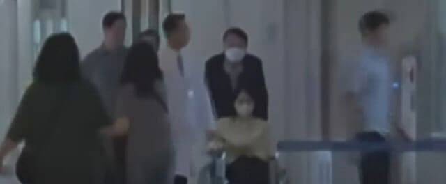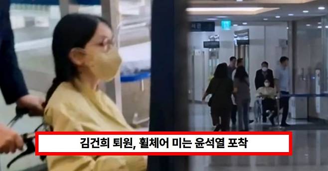 우울증 등으로 입원했던 김건희 여사가 입원 12일 만인 27일 퇴원했습니다. 윤석열 전 대통령으로 추청되는 남성이 김건희 여사의 휠체어를 직접 밀는 모습이 포착되기도 했습니다.