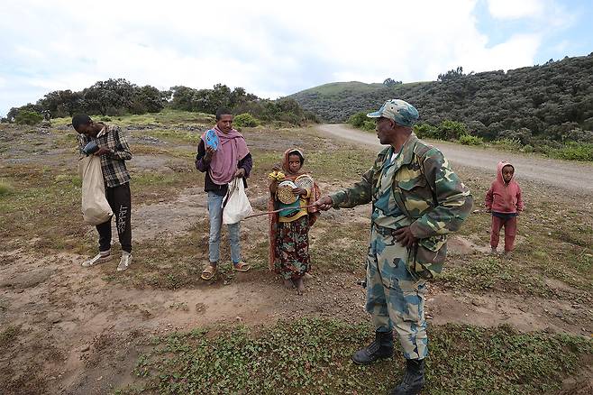 동행한 군인 아저씨가 관광객에게 가까이 가면 안 된다고 주의를 주는 것 같다.