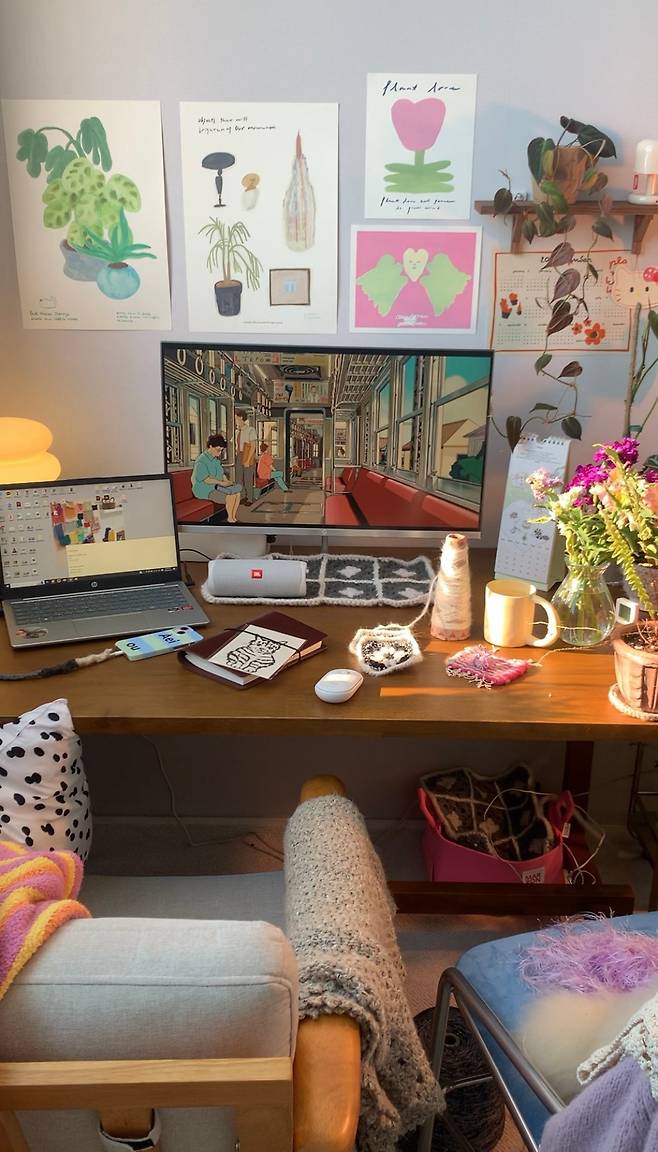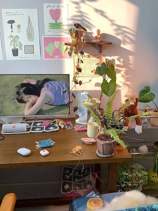 | 플랜테리어+뜨개질로 꾸민 데스크존