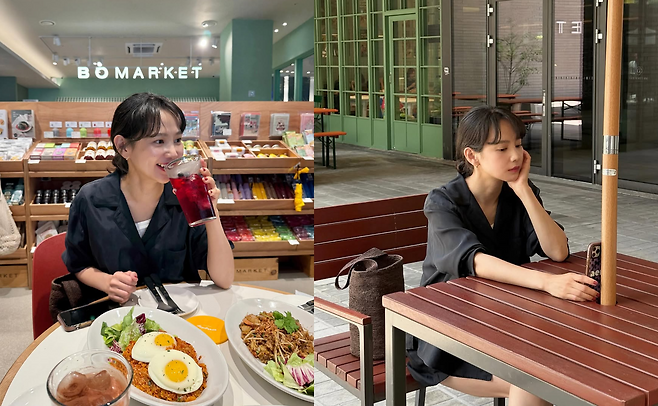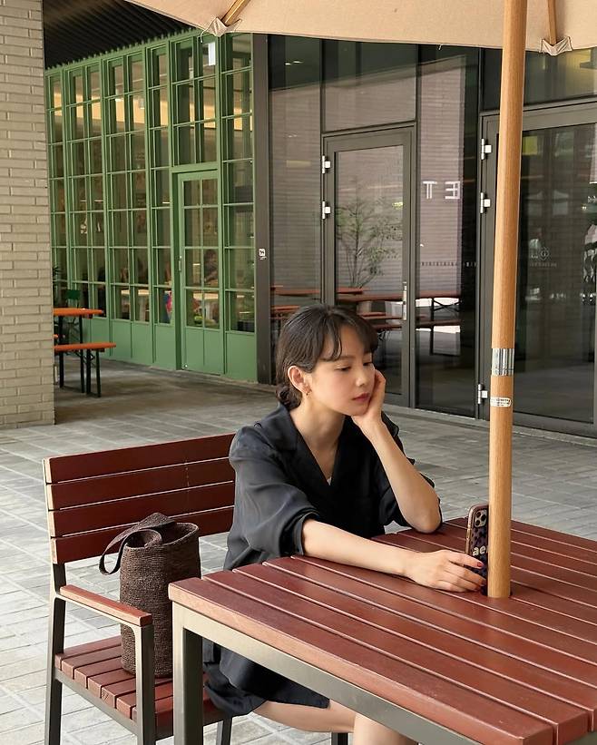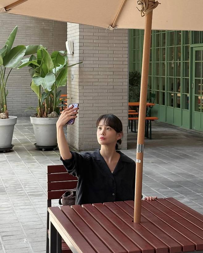 창문 너머로 스며드는 여름 바람, 햇살이 스치는 카페의 오후. 윤승아는 탁 트인 테라스 한 켠에 앉아 조용히 하루를 음미한다.