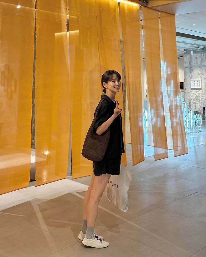 윤승아가 선택한 오늘의 스타일은 미니멀리즘의 정석, 올블랙 셔츠 원피스.