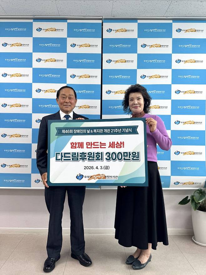 이날 전달식에는 다드림후원회 고종국 회장을 비롯해 회원 3명이 함께 참석해 정성을 담은 후원금을 전달했다. 다드림후원회는 지난 13년동안 매년 장애인 행사를 위해 후원금을 기부하며 지역사회에 따뜻한 울림을 전하고 있다.