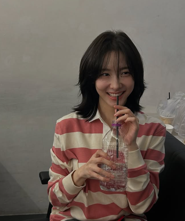 이번에 배우 박지현 님의 일상룩을 준비해 봤어요~ 지현 님은 스트라이프 티셔츠에 숏팬츠로 캐주얼한 패션을 선보였는데요!
