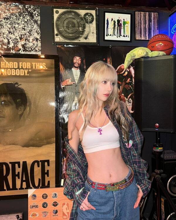 그룹 르세라핌 멤버 사쿠라가 아찔한 노출 의상을 입고 탄탄한 복근을 자랑했다.