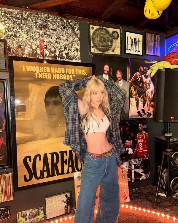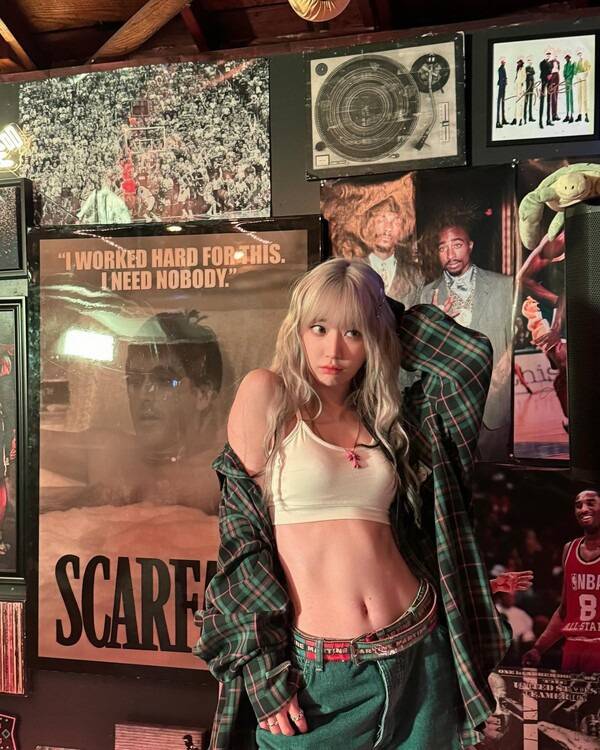 그룹 르세라핌 멤버 사쿠라가 아찔한 노출 의상을 입고 탄탄한 복근을 자랑했다.