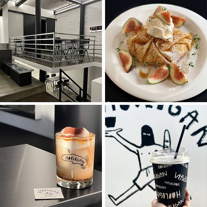홍대 신상 카페이자 블랙 톤의 시크한 인테리어와 힙하고 자유로운 분위기가 인상적인 곳이다. 훌리건 커피는 프랑스 디저트의 한 종류인 갈레트를 재해석하여 다양한 버전을 출시한다고 한다. 그 중 올가을 디저트는 ‘무화과 크림치즈 갈레트’로 직접 만든 무화과 잼과 크림치즈가 들어간 갈레트 위에 바닐라 아이스크림이 올려져 있다. 주위에 놓여진 생무화과와 갈레트 조각, 아이스크림까지 한번에 먹으면 맛의 조화는 물론 쫀득한 식감까지 살아있다. 여기에 꾸덕한 카라멜 크림이 올려진 뱅크림 라떼를 더하면 달콤함이 배가 된다. 무화과는 제철 과일로 신선도와 맛을 위해 한정 판매되니 서두르자.