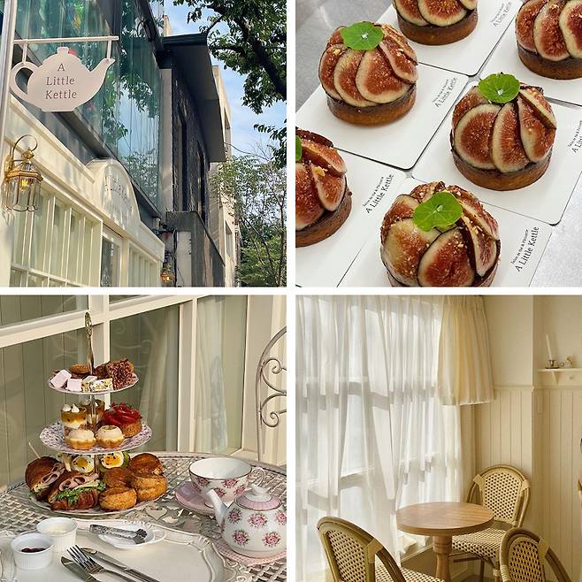 어리틀케틀의 무화과 타르트는 둥굴레와 아몬드로 무화과 특유의 맛을 잘 살린 메뉴다. 파트 슈크레에 둥굴레의 구수함이 느껴지는 가나슈, 고소한 아몬드 크림, 무화과 콩포트를 더하고 메이플 시럽을 뿌린 생무화과를 올린 후 다진 아몬드와 한련화 잎으로 마무리했다. 무화과의 달콤하면서도 약간의 쓴맛이 둥굴레와 아몬드의 묵직함과 잘 어우러진다. 더불어 삼 층까지 디저트로 가득 찬 에프터눈티 세트도 즐길 수 있다. 화이트 톤의 유럽풍 인테리어부터 찻잔까지 완벽한 디저트 타임을 가질 수 있는 이곳에서 올 가을의 무화과 디저트를 만나보는 것이 어떨까.