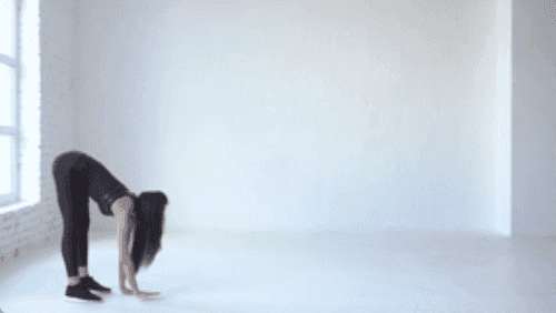 바닥에 선 상태에서 시작합니다. 상체를 앞으로 숙이며 손을 바닥에 짚습니다. 손을 앞으로 움직여 플랭크 자세를 만듭니다. 발을 당기면서 상체를 숙여 처음 자세로 돌아갑니다. 다시 손을 앞으로 움직이며 반복합니다.