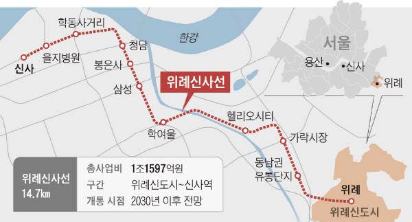 위례신사선은 수도권 2기 신도시 위례신도시에서 출발해 서울 송파구 가락시장, 강남구 대치동·삼성동·신사동 등 강남 핵심 지역 총 14.7km를 연결하는 광역철도다.