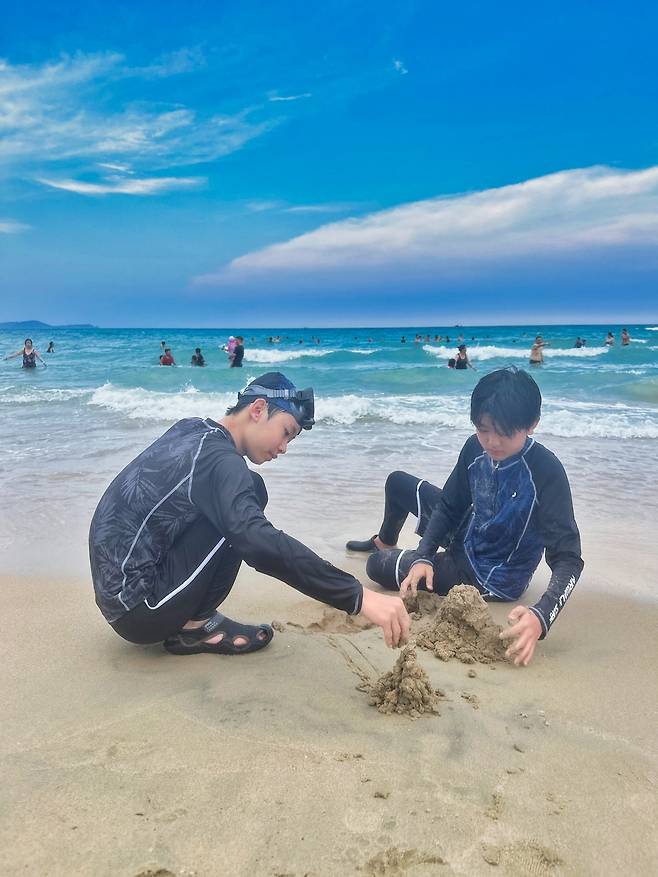 해변이 바로 옆이라 모래 장난과