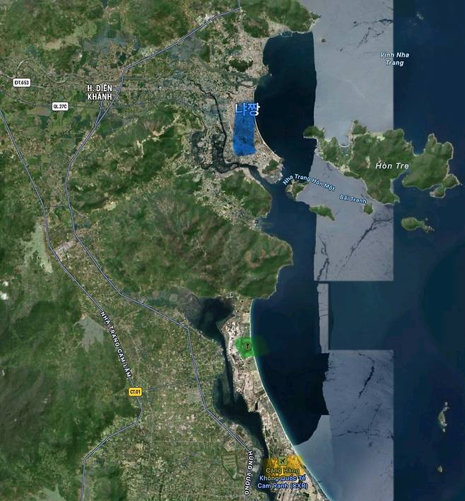 파란색은 냐짱의 시내 중심입니다.