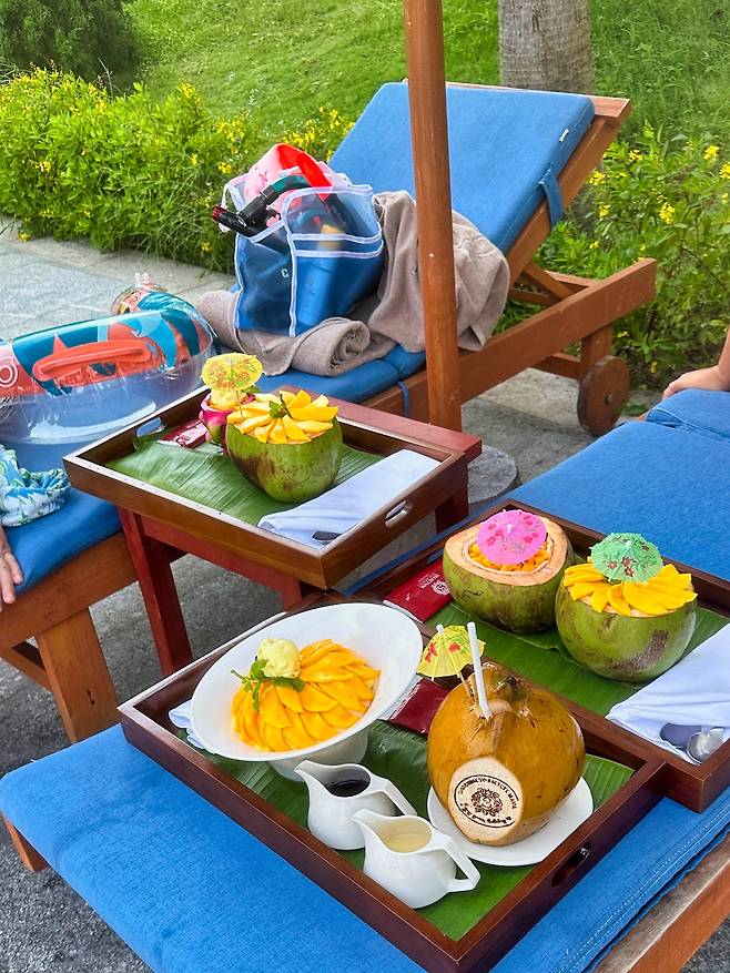 간식과 애프터눈 티는 빌라 수영장 앞쪽의