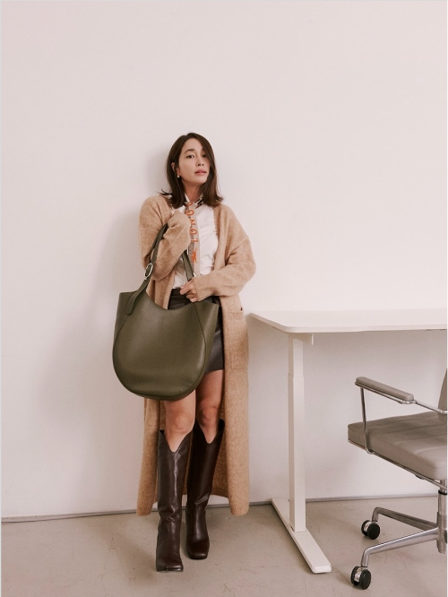이민정의 이번 패션은 폭염 속에서도 가을 분위기를 연출한 독특한 스타일링이다. 베이지 톤의 롱 카디건과 스카프를 두르고 포즈를 취한 모습에서 그녀만의 패션 철학이 드러난다. 이너로는 흰색 터틀넥과 어두운 계열의 스커트를 매치하고, 목에는 스카프까지 둘러 완벽한 가을 룩을 연출했다.