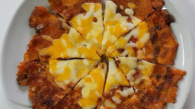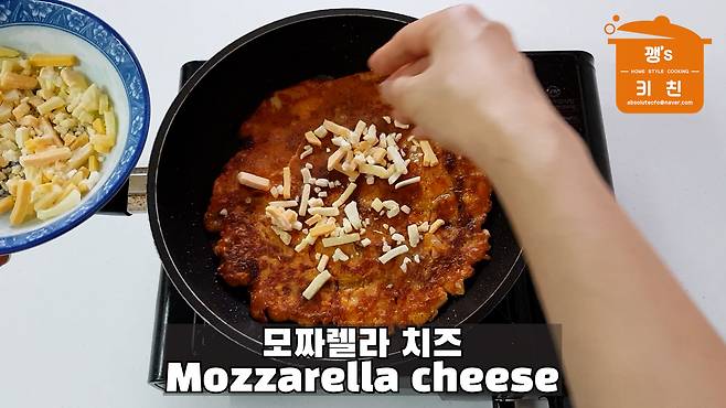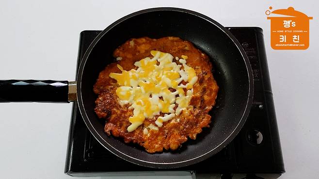 김치전 위에 치즈를