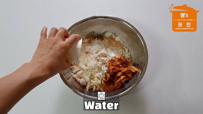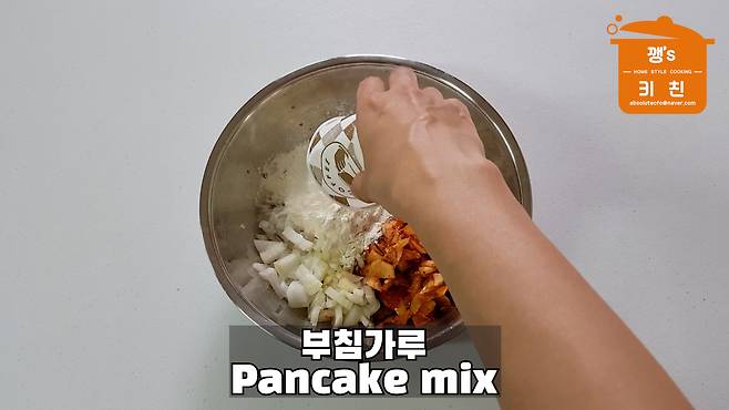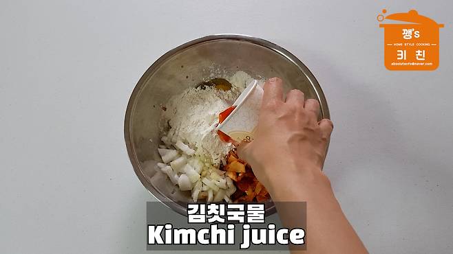 5. 부침가루 1컵, 김칫국물,