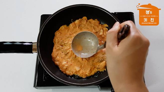김치전 반죽을 넣어주세요