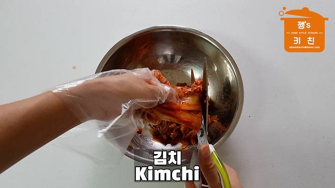 2. 김치 잘게 자르기