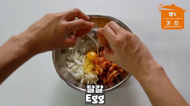 김치전 반죽(양파, 계란, 부침가루 1컵,