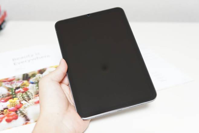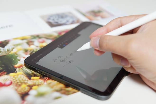 기존 6세대에서 아쉬웠던 젤리스크롤 현상도 7세대에서는 하드웨어적으로 개선되었습니다. 리퀴드 레티나 디스플레이는 500니트의 밝기와 P3 색역을 지원해서 실외에서도 선명하게 볼 수 있고, 트루톤 기능으로 눈의 피로도 덜어줍니다. 326PPI의 높은 픽셀 밀도로 텍스트나 이미지가 정말 또렷하게 보여서, 전자책을 읽거나 노트 필기를 할 때도 눈이 편안해요.