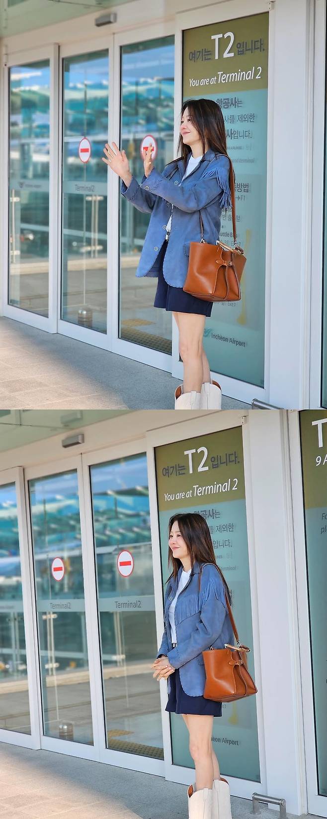 현장에 등장한 고현정은 청재킷과 데님 팬츠, 빅백을 매치한 공항패션으로 시선을 모았다.