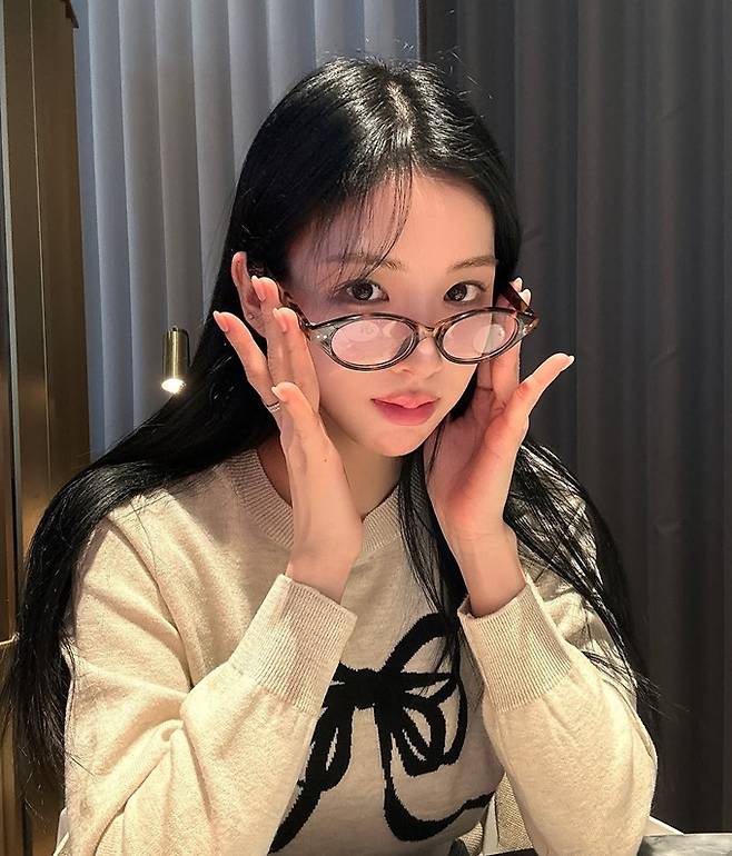 공개한 사진에서 강다은은 긴 헤어 스타일에 뿔테 안경을 쓰고 니트 스웨터를 걸친 데일리룩으로 10대 소녀 같은 초동안 긱시크 스타일을 선보였다.