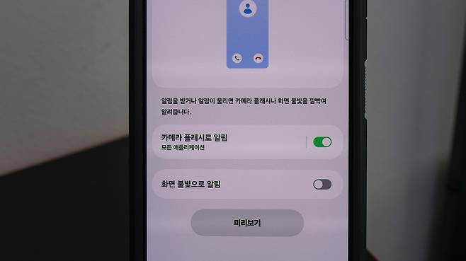 '불빛으로 알림' 기능을 켜두면,