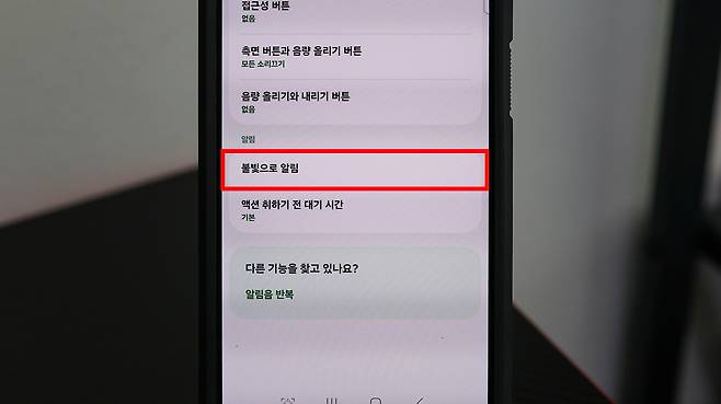 '불빛으로 알림'이라는 이름의 설정은