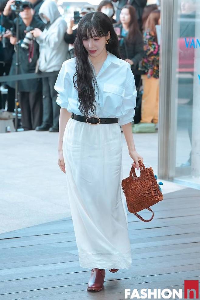 가수 티파니 영이 하늘하늘한 화이트 티셔츠 원피스룩으로 강남 나들이에 나섰다.