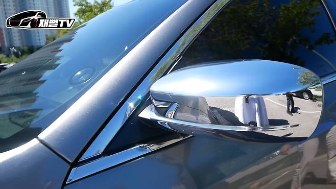이 차 산 지는 산 지는 한 달 정도 됐다고 하시네요. 진짜 햇빛이 비치니까 이게 얼마나 크롬이 센지 다 비치네요. 진짜 이게 미국 차 아닙니까? 이 감성... 도어 손잡이에 기스가 많이 타긴 했네요. 창문 프레임 부분도 전부 다 크롬인데, 이 차는 크롬 죽이기는 절대 하면 안 돼요. 오히려 크롬을 더 덕지덕지 붙여야 하는 차예요.