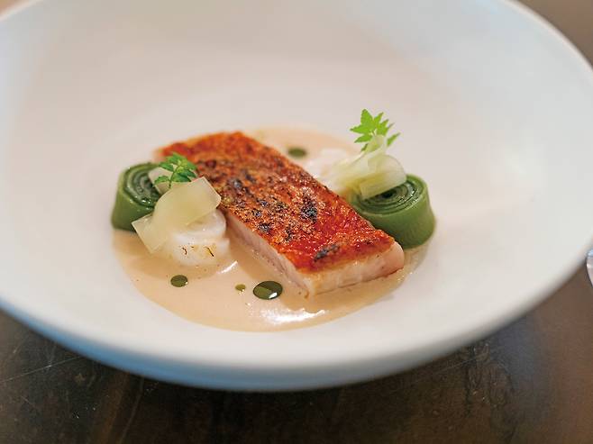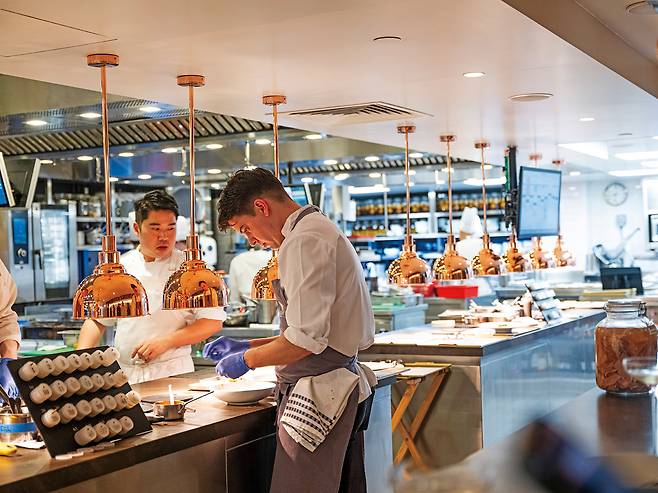홍콩의 식재료와 프렌치 퀴진의 화려한 조리 기술이 만난 식탁을 경험할 수 있는 앰버의 하이라이트는 ‘키친 익스피어리언스’. 이름 그대로 주방에 들어가 셰프들이 음식을 만드는 모습을 보며 갓 만든 음식을 맛보는 경험이다. 셰프에겐 ‘성역’으로 여겨지는 주방 안쪽에 과감히 식객을 초대해 모든 것을 아낌없이 보여주는 리처드의 자신감과 예술에 가까운 플레이팅이 완성되는 과정이 인상적인 시간이었다.