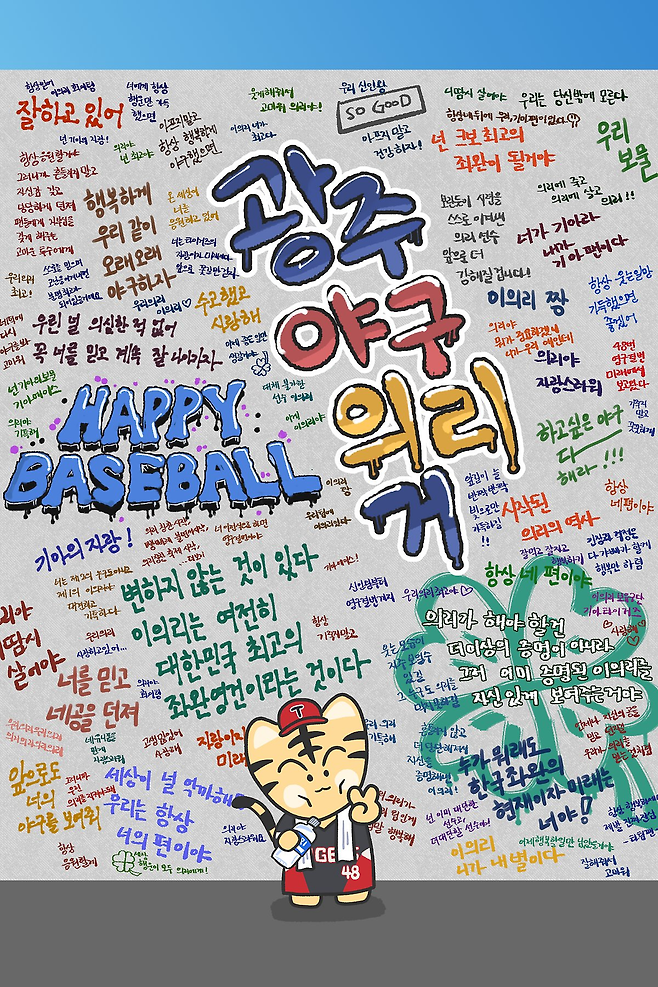 최근에 이의리 선수가 항저우 아시안게임에 낙마하게 된 사건이 있었어요. 너무 힘들 거라는 걸 아는데, 해줄 수 있는 게 없는 거예요. 내가 할 수 있는 게 응원밖에 없으니 그림을 그려서 올리면은 이의리 선수가 볼 수 있지 않을까, 팬들의 응원이 전달되지 않을까 싶어서 팬들의 응원 문구를 직접 받아 만화를 그렸어요. 제가 무슨 영향력이 있겠냐마는 만화를 올리면 그래도 독자분들이 의리 선수에 대한 응원과 칭찬을 조금 더 전해주지 않을까 하는 생각에요. “우리 의리는 진짜 귀한 선수예요. 많이 사랑받고 행복해야 할 친구예요”하고 쩌렁쩌렁 외치고 싶은 그런 마음이었거든요. 의리 선수가 저랑 서로 팔로우 상태라 볼 수도 있겠다 싶어서 다른 팬들의 응원까지 같이 담아 그렸는데 좋아요로 흔적을 남겨줬더라고요. 메시지를 보내주신 팬들이 너무 감사했고, 이 그림만은 함께 완성한 작품이라는 생각이 들었어요. 모두의 마음과 응원이 전달된 것 같은 기분이었고요. 의리 선수를 생각만 하면 아직도 마음이 아파요. 메이저리그 아니면 못 보냅니다. 이왕이면 디트로이트 타이거스였으면 좋겠네요!