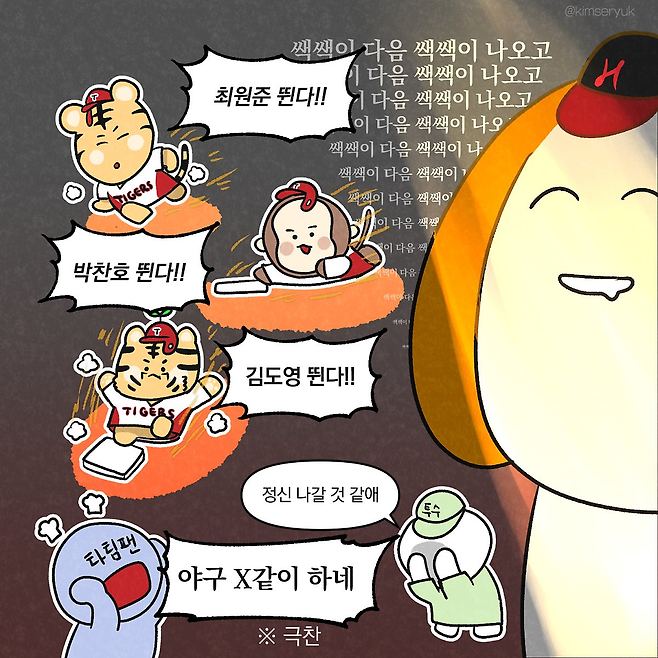 계속해서 언급되는 작품은 KIA의 경기 내용보단 오히려 일상 이야기요. 시간도 상관없고 팀도 상관없으니까, 반응이 꾸준히 오더라고요. 야구팬들의 일상이다 보니 ‘이거 진짜 너 같다. 이건 너랑 다르네’ 하면서 그런 식으로 공유해 주시고요.