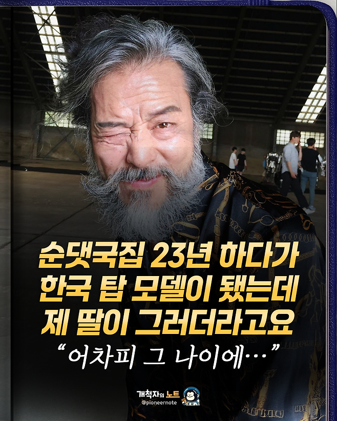순댓국집 20년 하다가 한국 탑 모델이 됐는데, 딸이 그러더라고요 "어차피 그 나이에.."