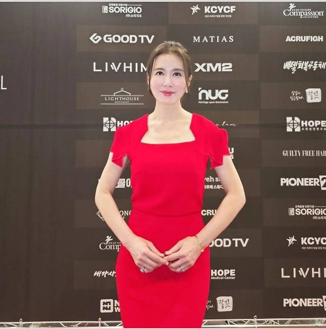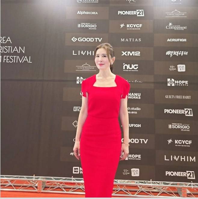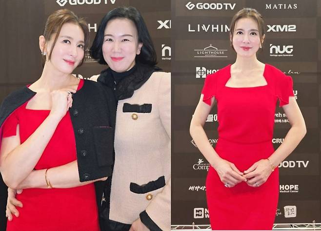 간결하면서도 세련된 디자인의 레드 드레스는 이일화의 고급스러운 매력을 한층 더 돋보였습니다.