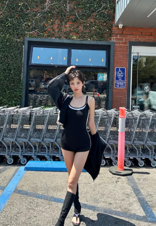 전소연이 선택한 보디슈트는 단순한 블랙 컬러가 아닌, 등 부분이 깊게 파이고 어깨끈 디테일이 돋보이는 슬림핏 디자인이었다.