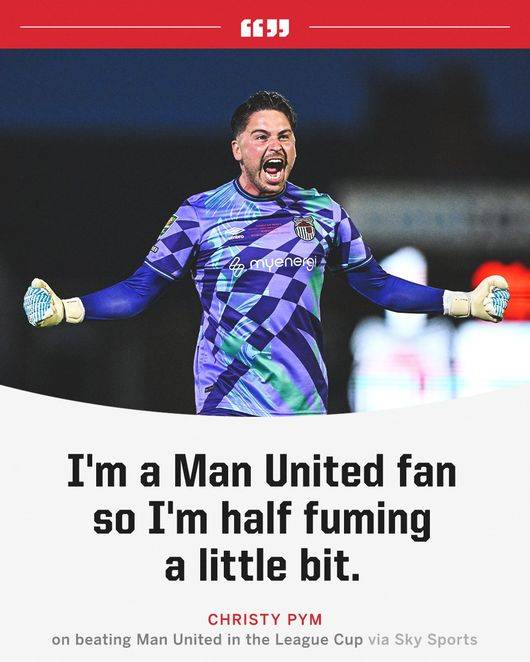 'ESPN'은 28일(한국시간) "맨유 팬인 그림스비 골키퍼 핌은 승리한 뒤 '반쯤 분노'했다. 그는 맨유를 카라바오컵에서 탈락시킨 뒤 '아직도 흥분이 가시지 않았다'고 말했다"라고 보도했다.