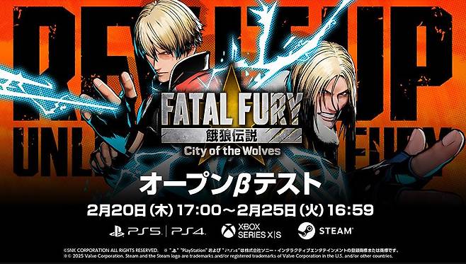 SNK는 대전격투게임 '아랑전설: 시티 오브 울브즈'의 PS4, PS5, 엑스박스 시리즈 엑스/에스, PC용 오픈 베타 테스트를 오는 20일부터 25일까지 진행합니다.