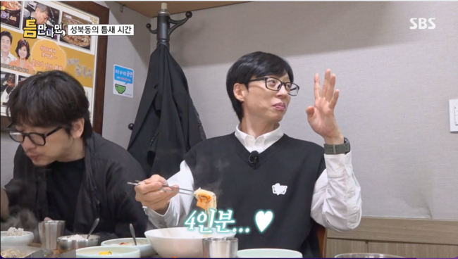 [OSEN=박근희 기자] '틈만 나면,’ 유재석이 국밥 맛집에서 식사를 하며 딸 나은이를 생각했다.